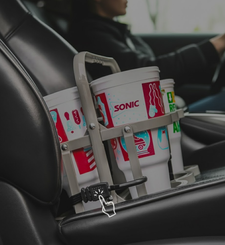 Safely transport any order. Use the integrated bungee cord to secure the drink carrier for car seats.